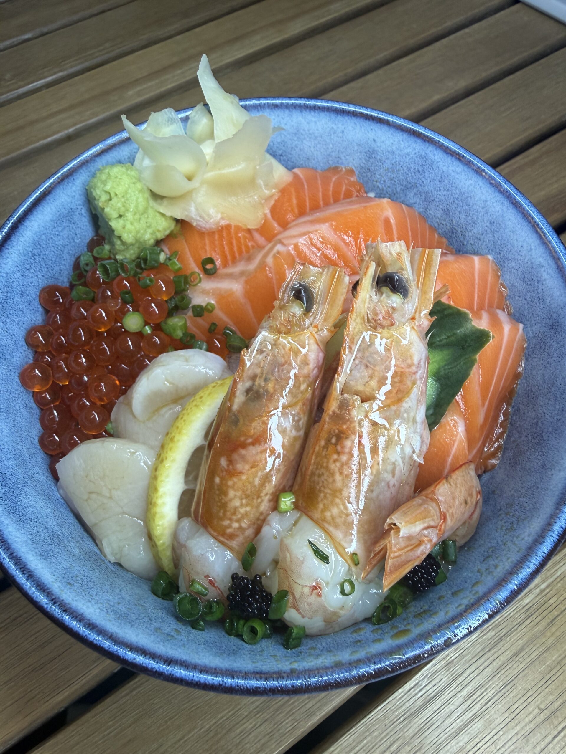 Salmon Sashimi & Roe, Garnish, Soy Sauce, Wasabi, pickled ginger
