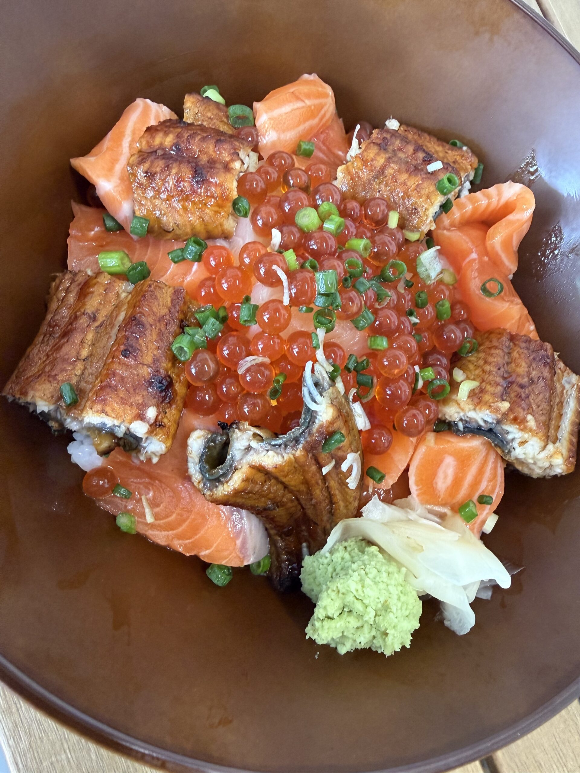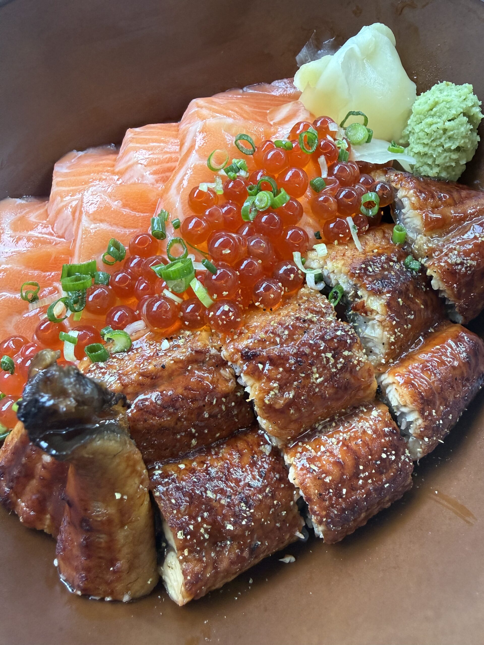 Sushi Rice, Boiled Soy Sauce marinated EEL 1/2, Raw Salmon,